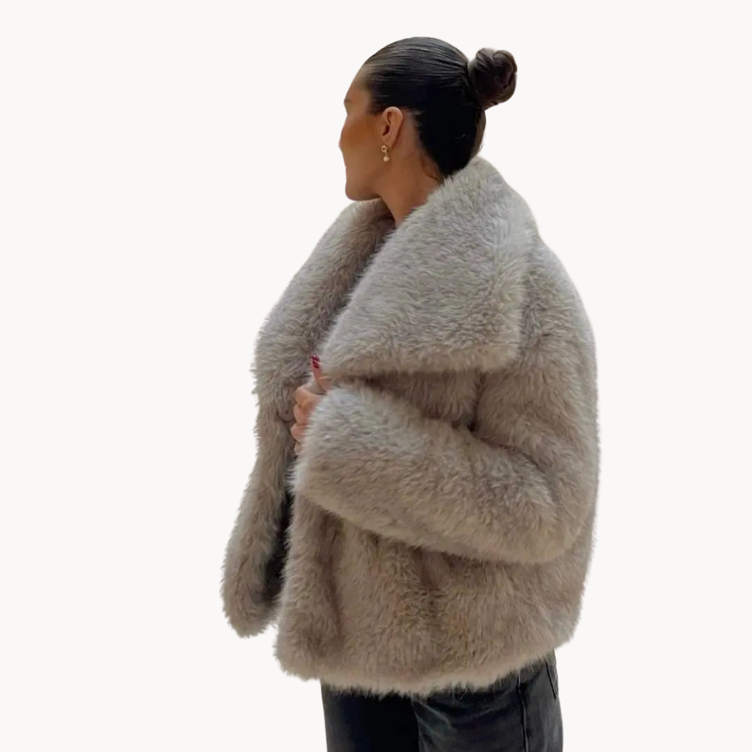 De teddyjas voor dames combineert klassieke stijl met comfort en praktische functionaliteit voor koude dagen. De volumineuze snit en verzorgde afwerking maken het eenvoudig om veelzijdige en gebalanceerde outfits te creëren.