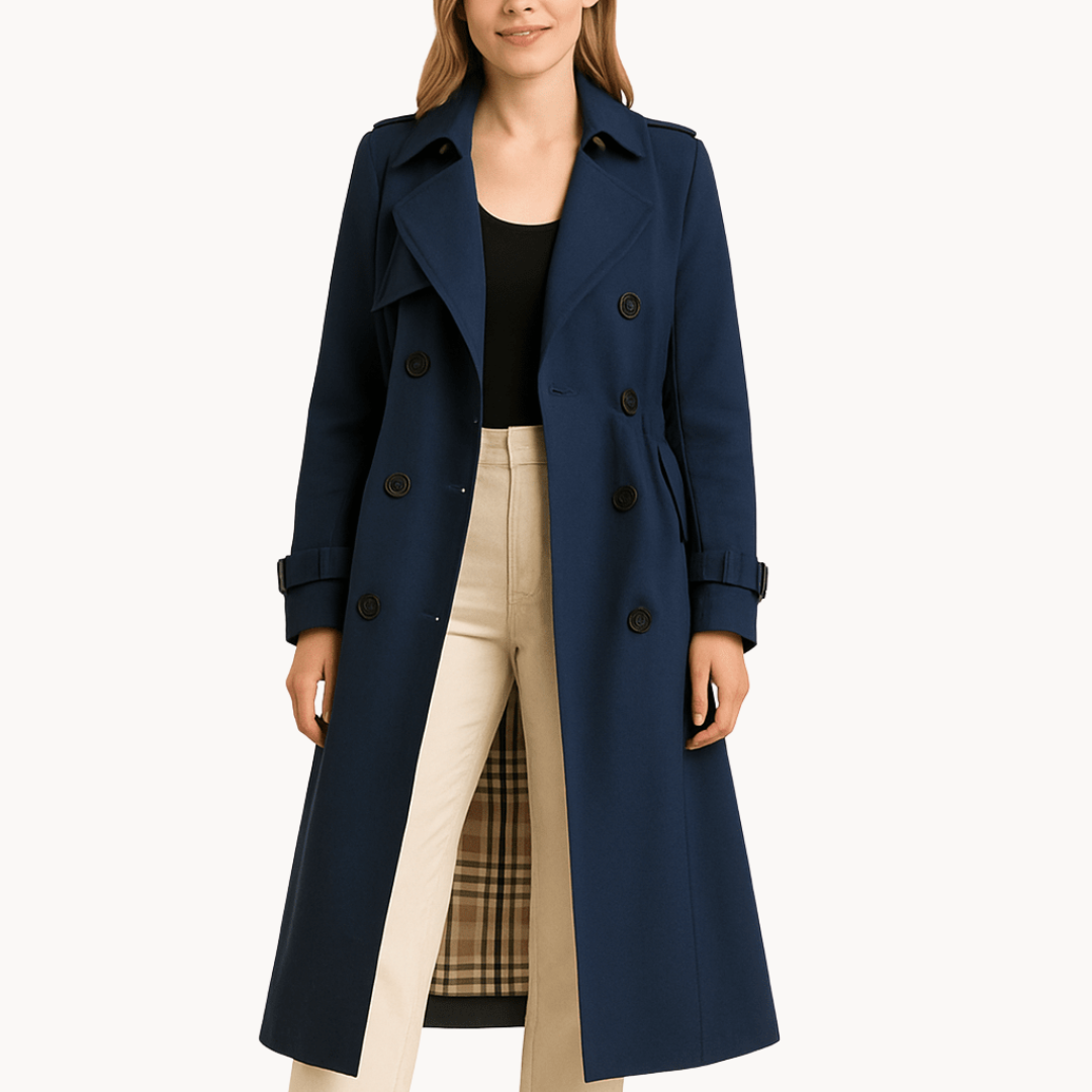 De dames trenchcoat lange overjas is een tijdloze jas die functionaliteit en stijl combineert. De gestructureerde snit, dubbele knoopsluiting en tailleceintuur zorgen voor een evenwichtige en zelfverzekerde uitstraling, ideaal voor diverse dagelijkse outfits.