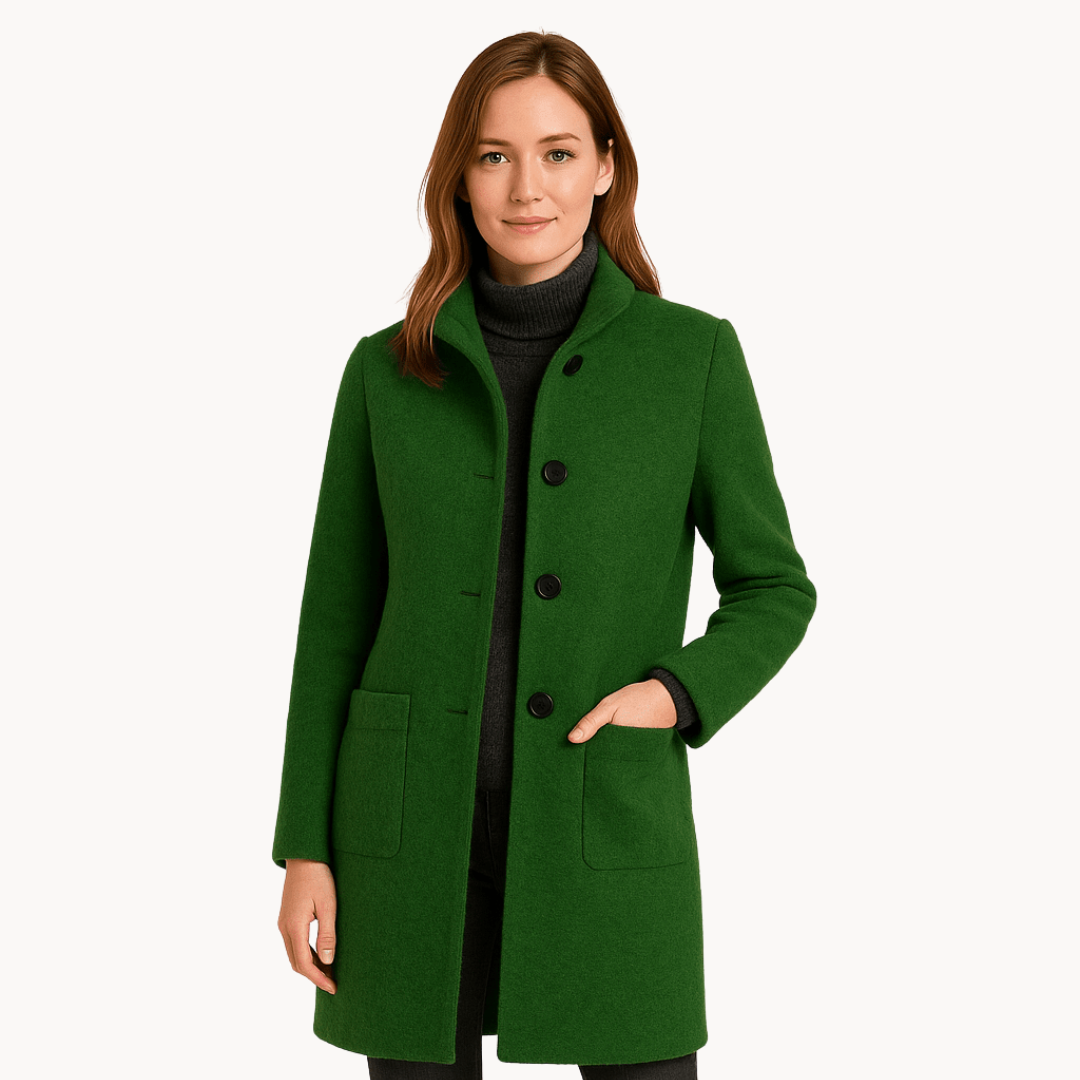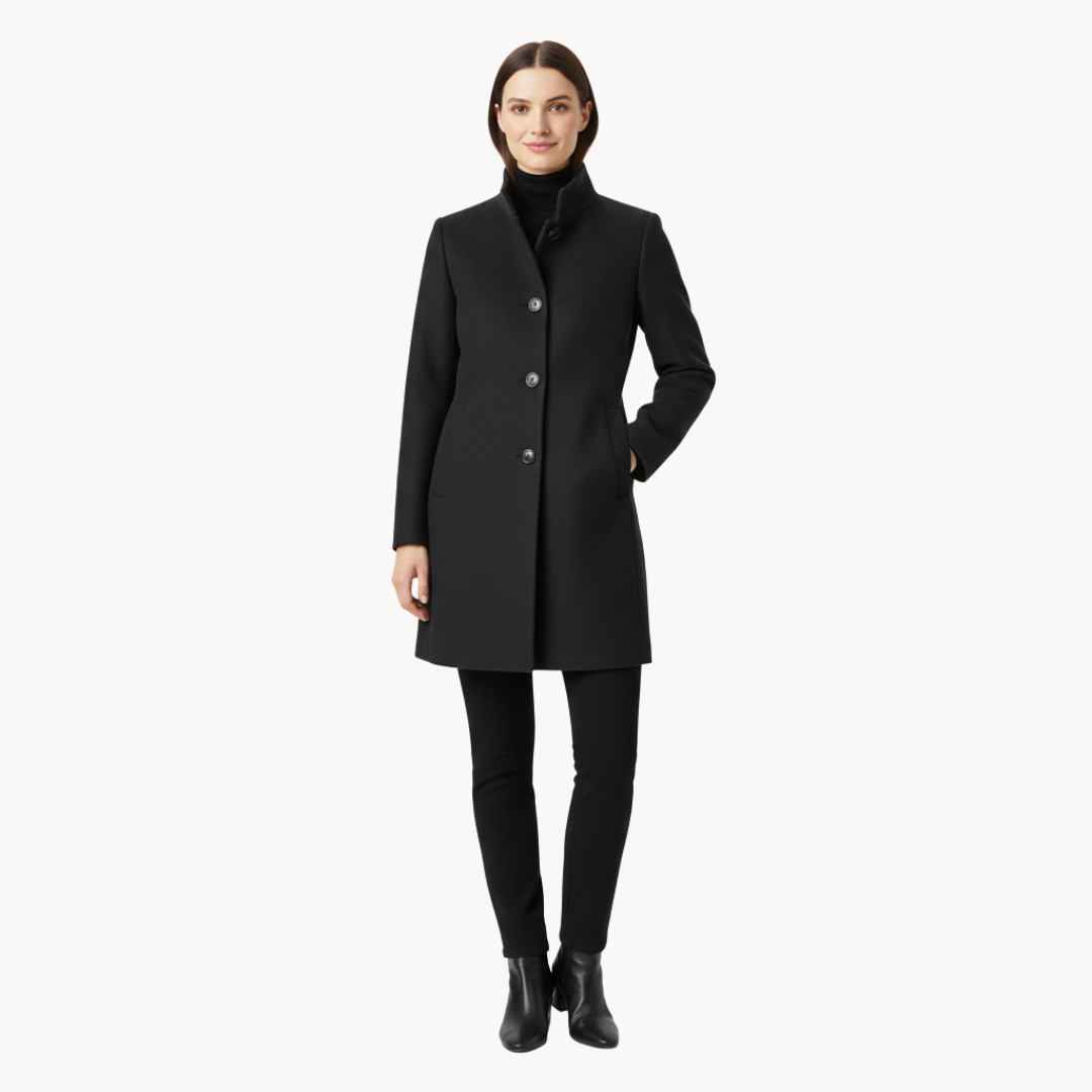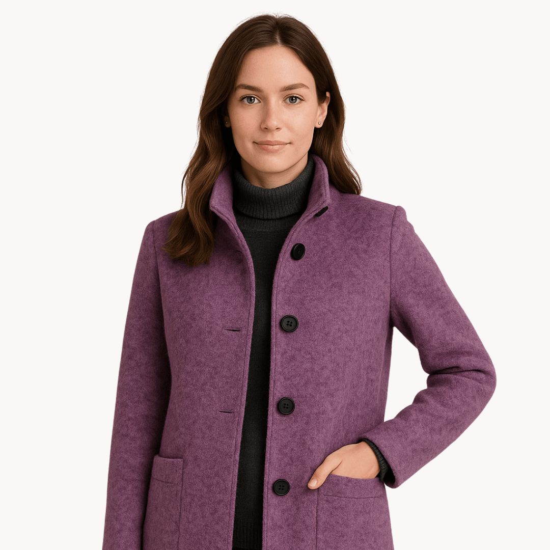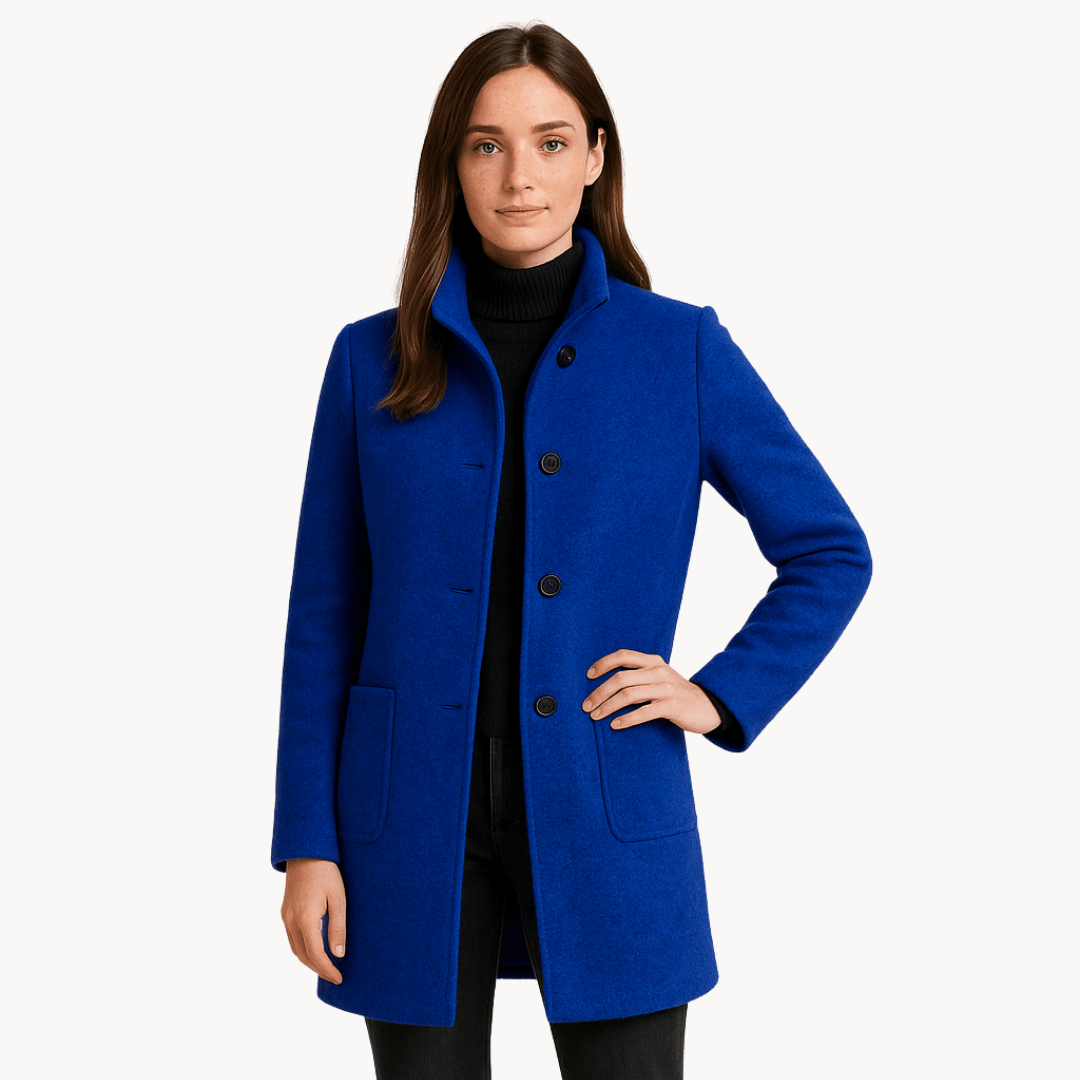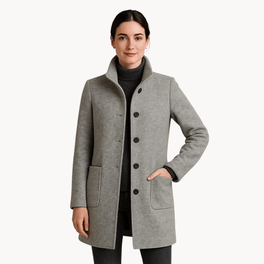 • Gestructureerd ontwerp met hoge kraag en functionele sluiting.
