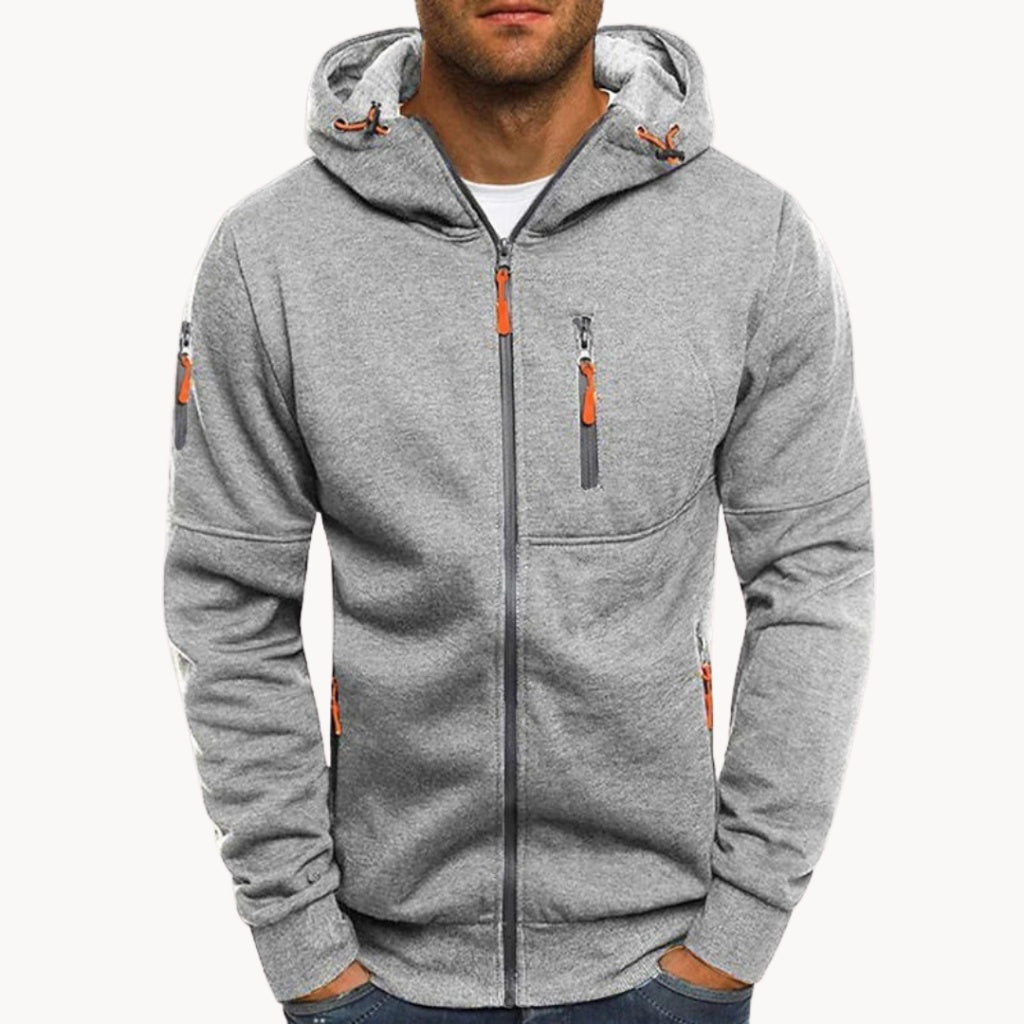 De herenjas verwarmde is een moderne sweatshirt-jack met capuchon, ontworpen voor dagelijks gebruik en bewegingsvrijheid. De functionele rits en geïntegreerde capuchon maken het eenvoudig om aan te passen aan verschillende weersomstandigheden en situaties.
